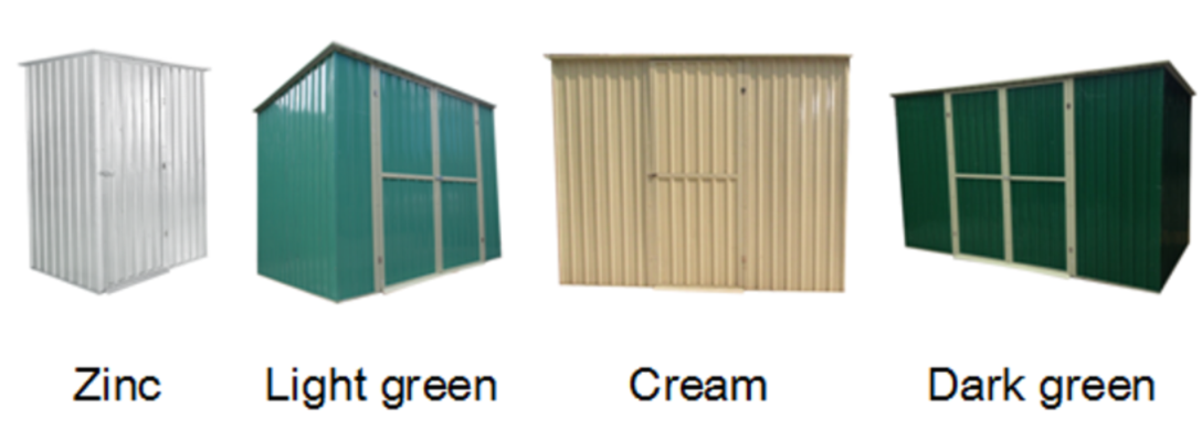 *Metal sheds are various, gable roof style, pent roof style, green color, cream color or galvanized color.